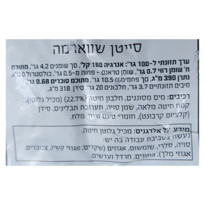 לפניכם ערכים תזונתיים של סייטן שווארמה טבע דלי