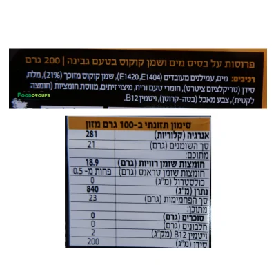 לפניכם ערך תזונתי של צהובה טבעונית פרוסה דק דק VEGA